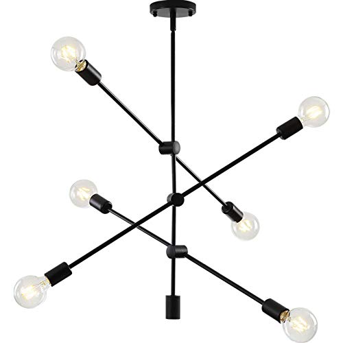 - ✅【MODERN CHANDELIERS ART DESIGN】: If you want to replace an old fixture lighting? Searching for an elegant chandelier for your room? This modern 6 light sputnik chandelier is a good choice. Its unique design features three angled rods that cross over the downrod. Each rod is supporting a bulb at the ends. Bringing a touch of opulence to your space that makes a statement.